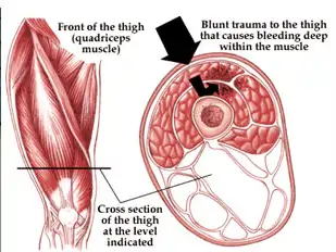 - Contusão: Lesão causada por trauma direto. A extensão do dano depende da energia envolvida no impacto. Quanto maior energia, maior o dano aos tecidos moles, com maior formação de tecido fibroso e consequente perda de elasticidade e força muscular.